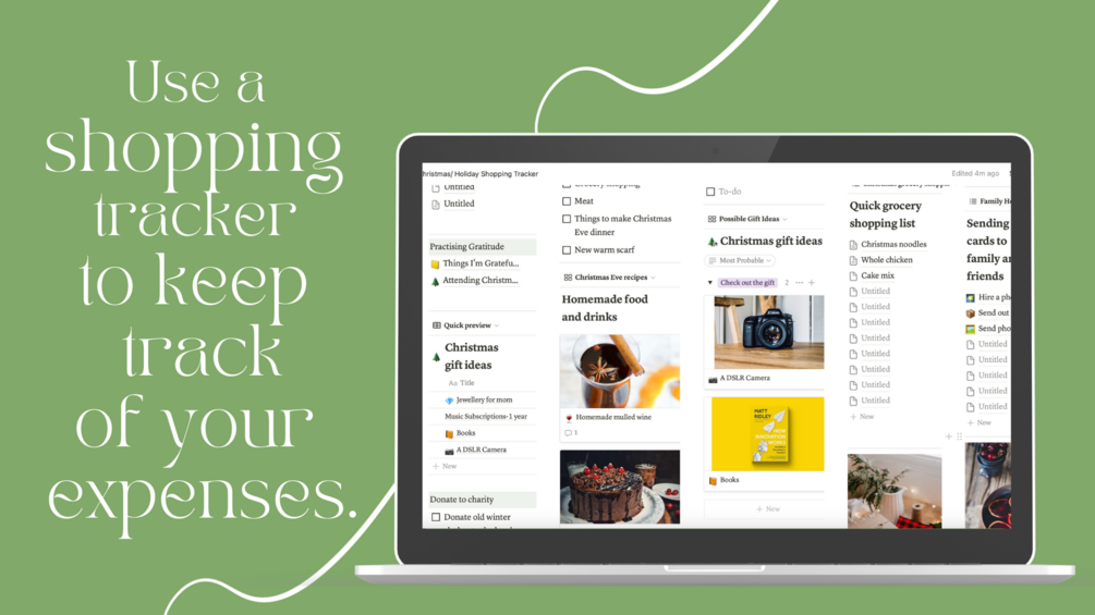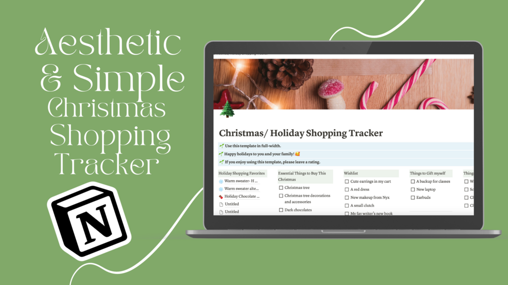 The Aesthetic & Simple Christmas/Holiday Shopping Tracker has different databases to help you keep track of your holiday shopping lists and needs.