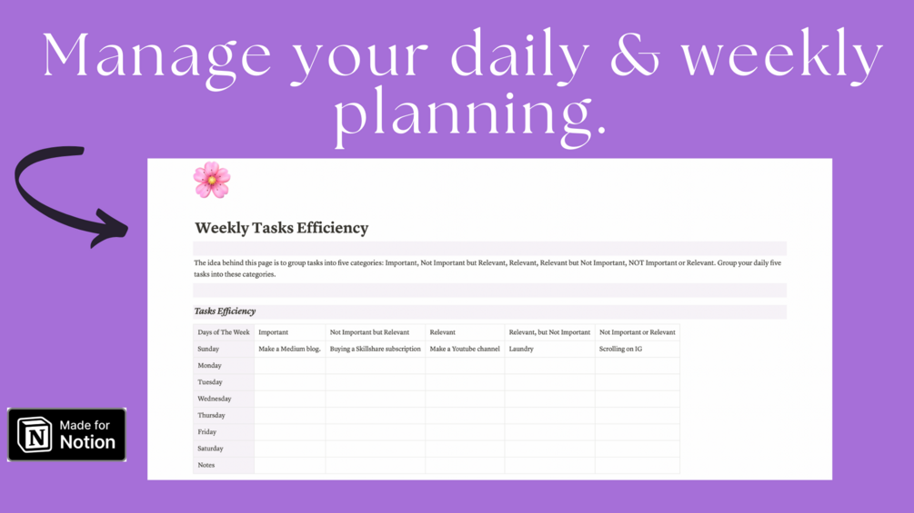 2) Plan your day with ease using this intuitive Notion template. Organize tasks, set priorities, and allocate time effectively, all within a single, user-friendly interface. Enjoy the satisfaction of checking off completed items as you progress through your day.