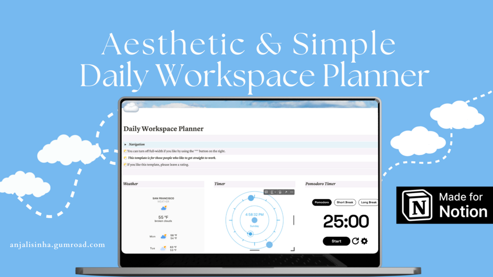 4) Upgrade your Notion workspace with the "Aesthetic & Simple Daily Workspace" template and transform the way you work. Embrace a calming design while supercharging your productivity – because a beautiful workspace inspires beautiful work.