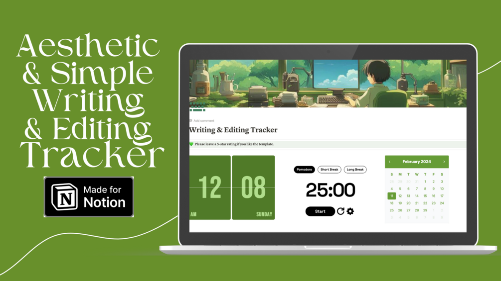 Experience the perfect blend of aesthetics and simplicity with the Aesthetic & Simple Writing & Editing Tracker Notion template. Elevate your writing experience, boost your productivity, and bring your creative vision to life with this essential tool for writers and editors alike. Download now and embark on a journey towards more efficient and inspired writing.