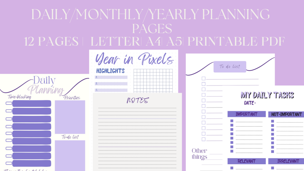 Aesthetic Daily/Monthly/Yearly Planning Pages Printable PDF (12 PAGES)