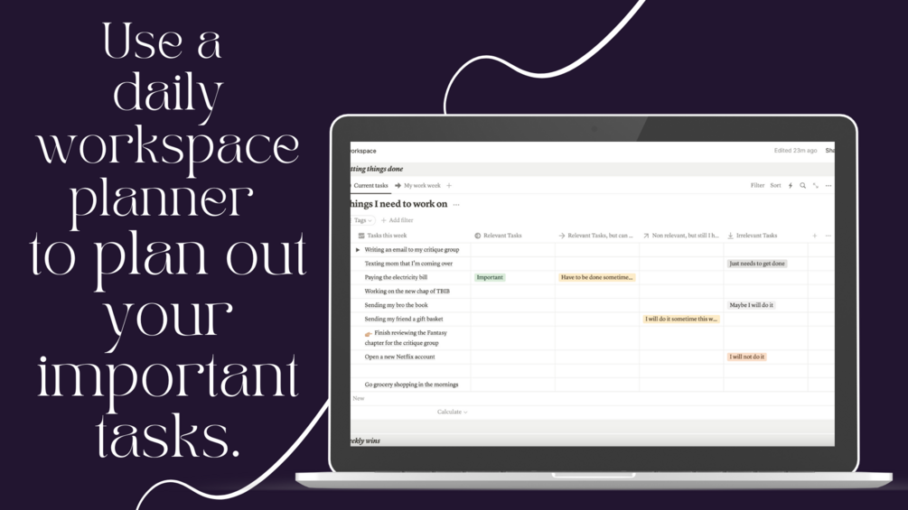 With this minimal and simple daily workspace planner, I solve that problem for you. It has a dark mode so you can solely focus on your important tasks.
