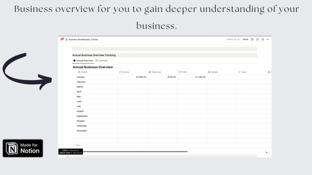Take control of your business finances and make informed decisions with the Simple Business Overview Tracker Notion template. Streamline your financial management, gain valuable insights, and pave the way for your business's success. Download the template today and embark on a journey towards financial clarity and efficiency.